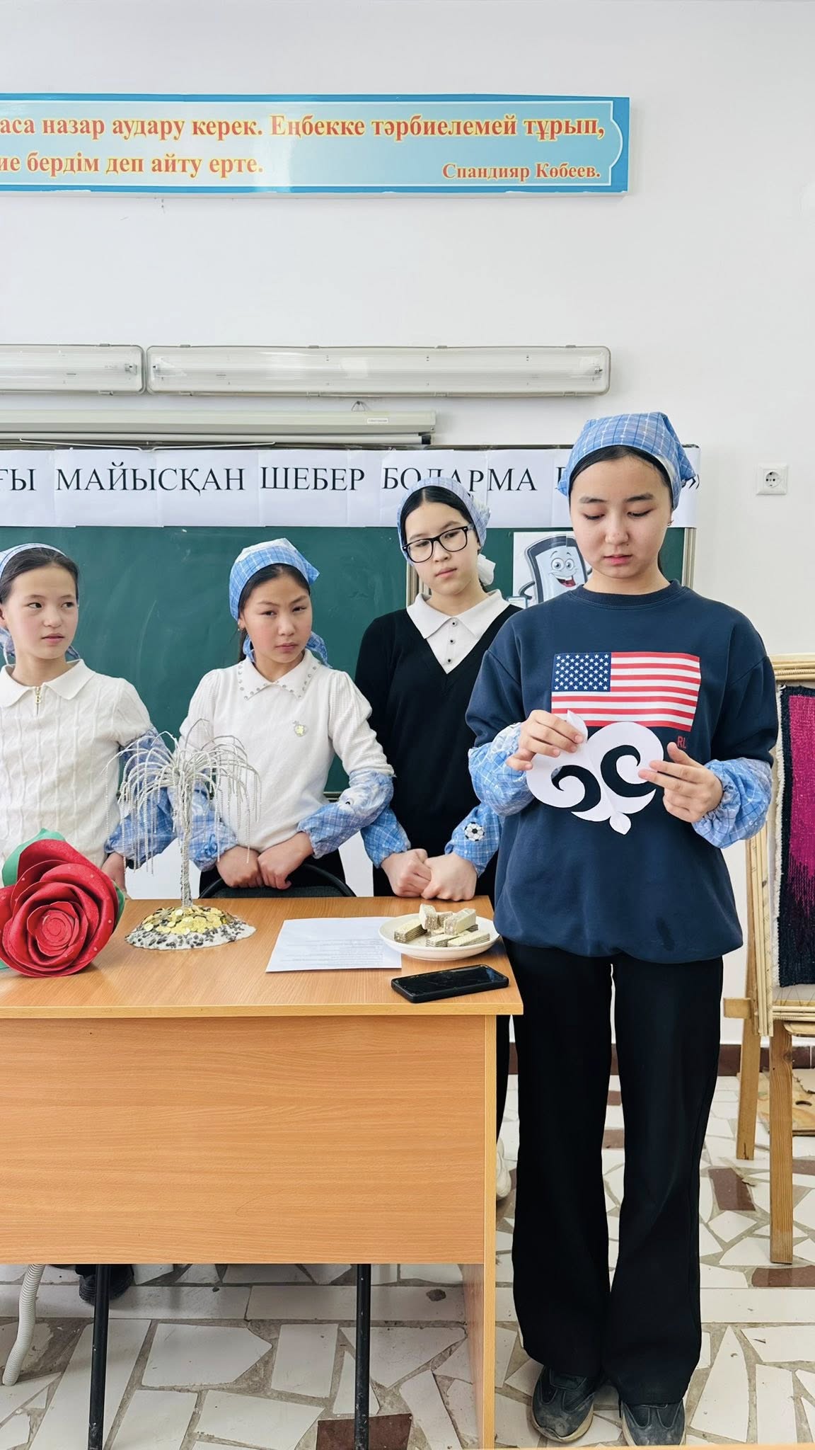 «Он саусағы майысқан шебер болар ма екенбіз?» тақырыбындағы іс-шара 7-сынып оқушыларының қатысуымен өткізілді. Шара барысында қазақ халқының қолөнерінің тарихы мен маңызы туралы мағлұмат берілді. Оқушылар қолөнерге байланысты мақал-мәтелдер айтып, өнер туралы ойларымен бөлісті.