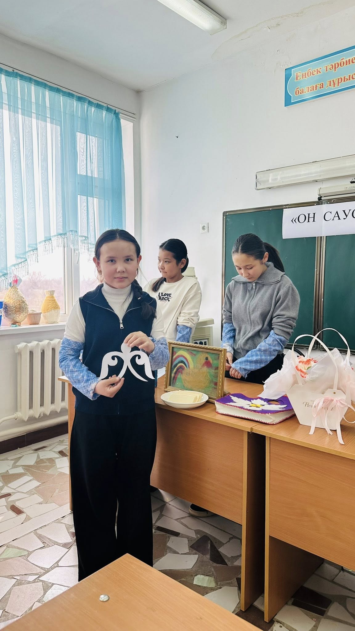 Іс-шара аясында оқушылар өз қолдарымен жасаған бұйымдарын таныстырып, олардың жасалу жолын түсіндірді.
